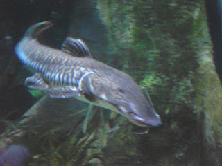 They had some really awesome jelly fish tanks, with really neat lighting, and the jelly fish were glowing all sorts of neat shades, but my camera just couldn't pick it up very well. The other tank was cooler, but it was way to dark to see anything in the picture... shucks!